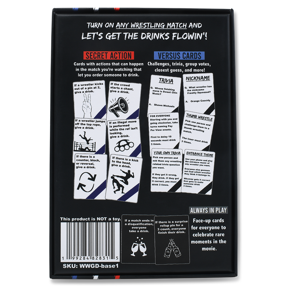 Watch Wrestling, Get Drunk is built for fans who love big entrances, dramatic finishes, and over-the-top moments. This live pro wrestling drinking game keeps everyone focused on the actual match while secretly handing out drinks based on what happens in the ring.